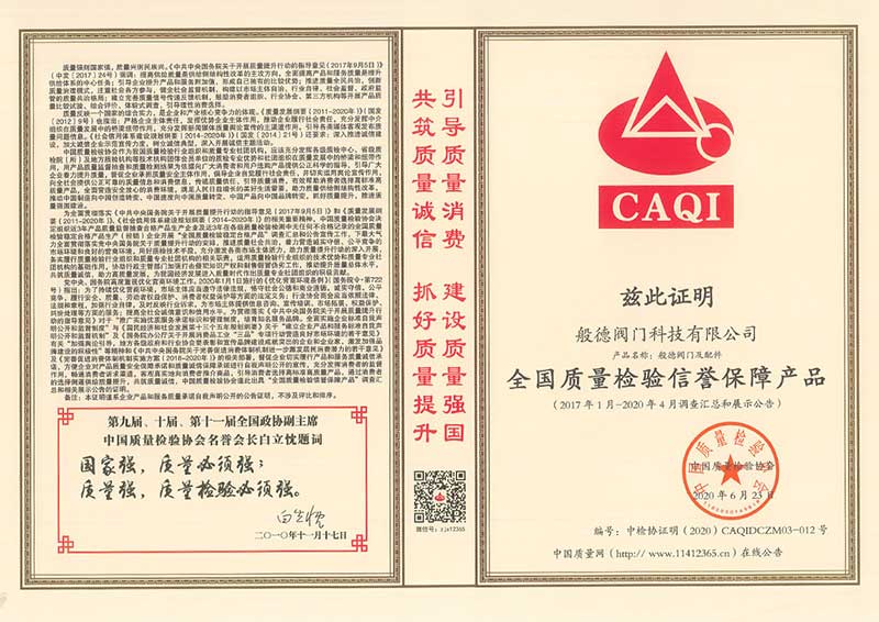 - 全國(guó)閥門行業(yè)質(zhì)量領(lǐng)先品牌>>查看證書