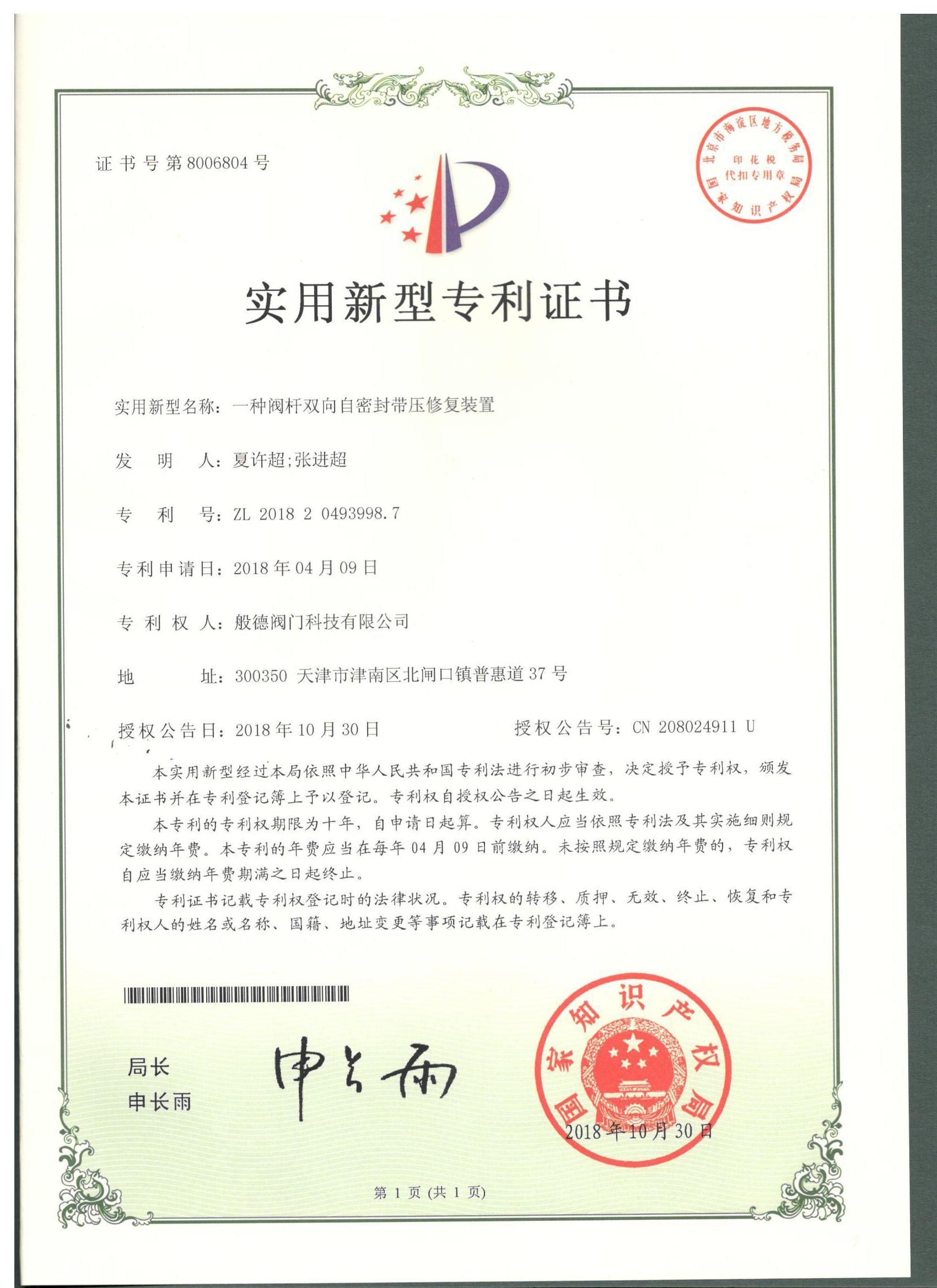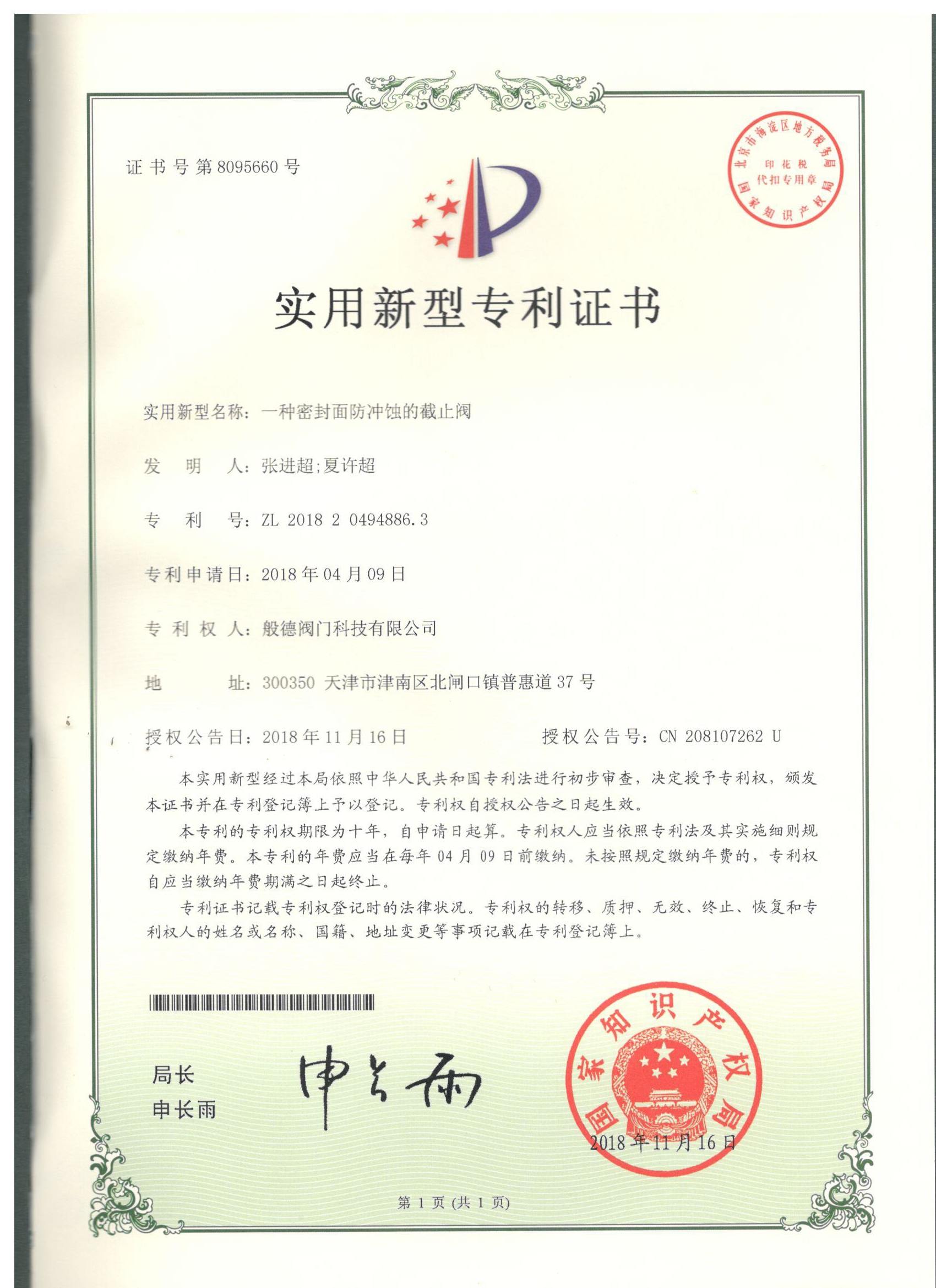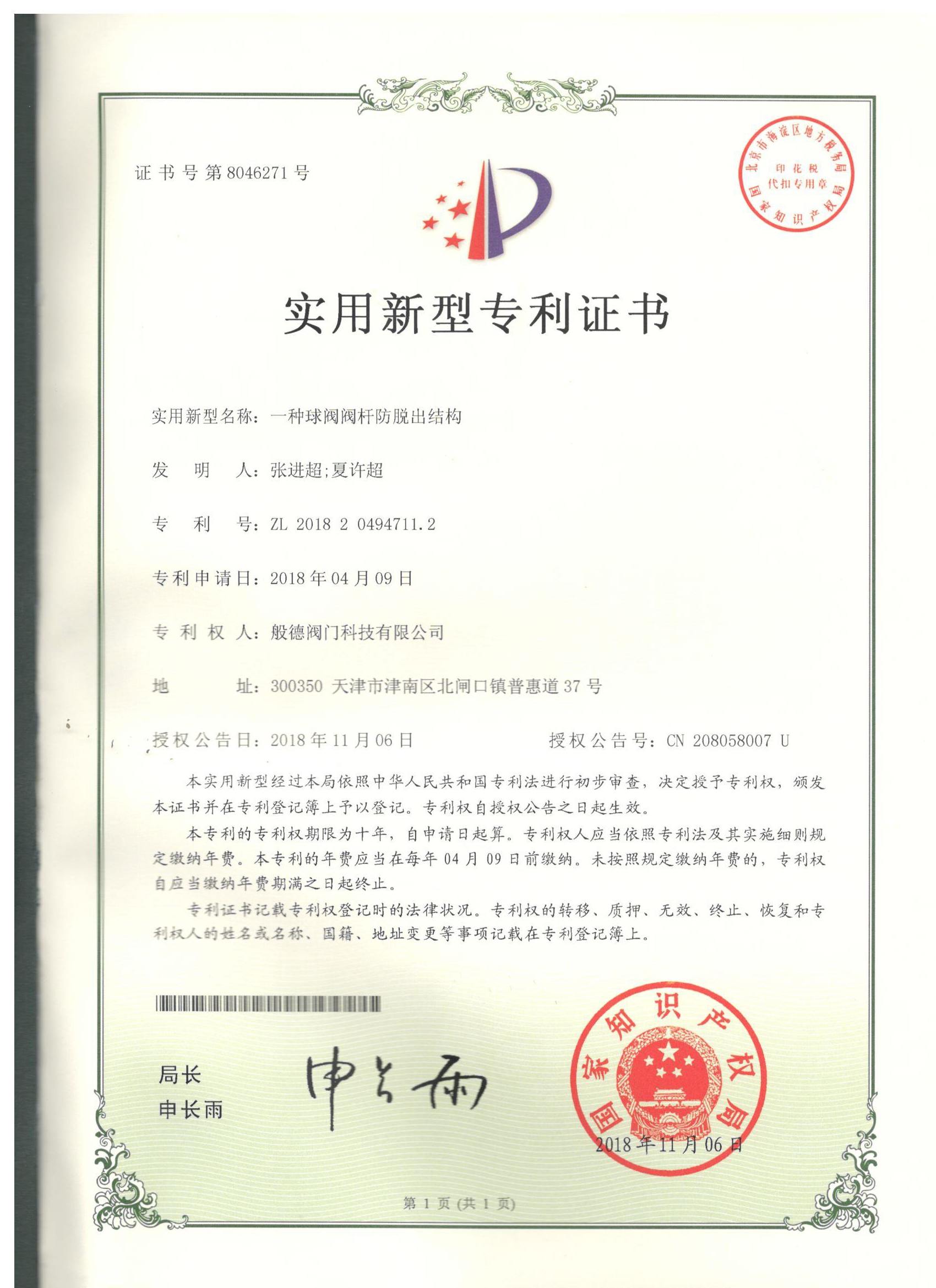 - 般德閥門 高新技術(shù)企業(yè)證書>>查看證書