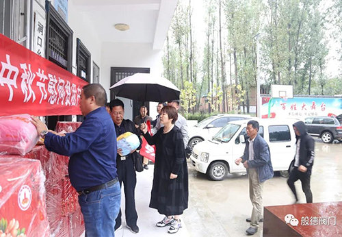2018年9月19日,般德閥門作為洛陽市鄭州商會會長企業(yè), 與商會其他公司代表一起,冒雨綿密的秋雨,到洛寧縣澗口鄉(xiāng)看望寺上村的鄉(xiāng)親,為他們送去中秋祝福。