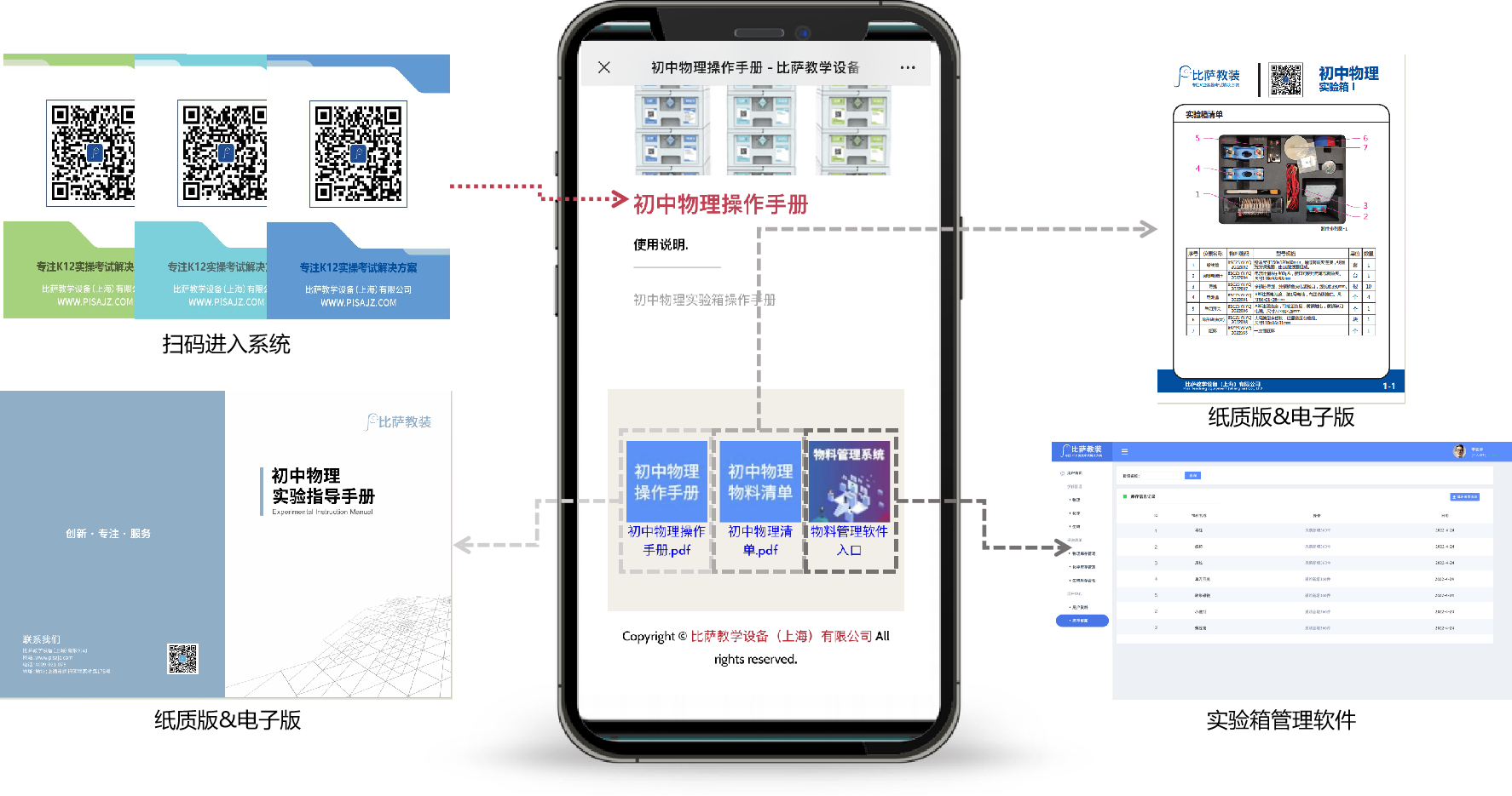 為滿足現(xiàn)代教學(xué)對于便捷與高效的需求,比薩為實驗箱設(shè)計研發(fā)一套管理系統(tǒng)。該系統(tǒng)為用戶提供了一鍵掃碼的便捷功能,讓實驗員老師能夠輕松查看實驗箱清單、操作手冊,并方便進行數(shù)據(jù)的錄入與清單的導(dǎo)出,極大地提升了工作效率。