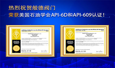 般德榮獲美國(guó)石油學(xué)會(huì)API-6D和API-609認(rèn)證