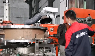 大口徑蝶閥蝶板加工中,般德閥門(mén)工廠閥門(mén)火熱生產(chǎn)中